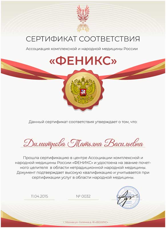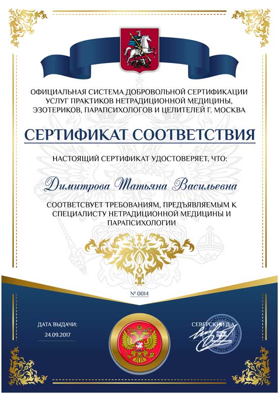 Здравствуйте! Меня зовут Татьяна Васильевна. Я обладаю даром ясновидения. В моей жизни было много страшных потрясений поэтому я хорошо понимаю, что чувствуют люди которые обращаются ко мне за помощью. Божий Дар Ясновидения я обрела как награду за пережитые страдания. После просветления я могу помочь любому человеку в тяжелый момент его земного пути. Чем успешно занимаюсь уже свыше 30 лет. Я выполняю свою миссию - помогаю людям по всему миру обрести любовь и счастье. Вы всегда можете обратится ко мне с проблемой любого рода. Не бойтесь обращаться ко мне! Помощь получают все, кто о ней попросит. Таково распоряжение светлых сил, я никому не могу отказать в поддержке и помощи, ведь Магические знания и сила были даны мне, чтобы я применяла их на пользу людям. Я постараюсь предсказать Вашу судьбу, вернуть любимого в семью, помочь в бизнесе, открыть финансовые каналы, снять порчу и сглаз и поставить эффективную защиту. Обращаясь, Вы можете быть уверенными в том, что я приложу все усилия что бы помочь Вам. Работа ведется с энергетическим полем человека, поэтому все ритуалы, которые я провожу, абсолютно безопасны для Вас и не имеют никаких негативных последствий. Поскольку я работаю с энергетикой человека через информационные поля земли, возможна работа по фотографии - энергетическому образу человека. Гарантирую полную конфиденциальность. Я оказываю помощь в любовных делах, возобновлении былых чувств. Постараюсь помочь Вам привлечь в жизнь удачу и наладить финансовое состояние. Помощь в наказании обидчиков. Просмотр грядущих в вашей жизни событий. Многое подвластно моему Дару. Я знаю, любой человек имеет право на счастье!